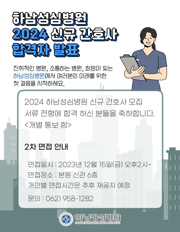 2024³â Çϳ²¼º½Éº´¿ø ½Å±Ô °£È£»ç ¸ðÁý ¼·ù ÀüÇü¿¡ ÇÕ°ÝÇϽÉÀ» ÃàÇϵ帳´Ï´Ù.